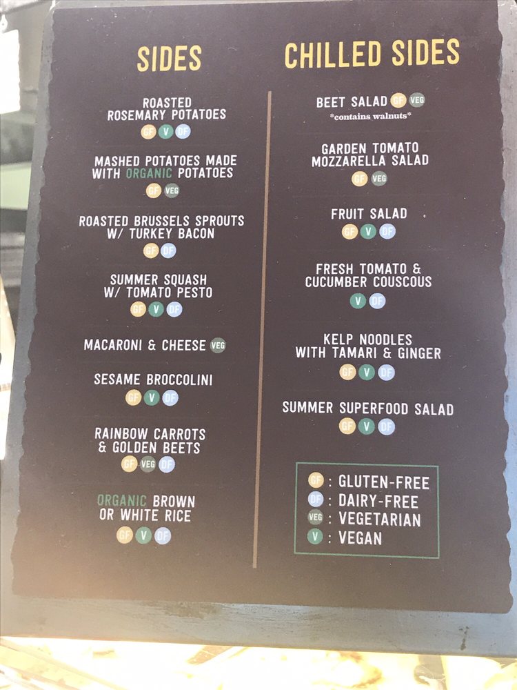 herb marinated cage-free chicken, certified humane, antibiotic free & never frozen, choice of two family sides and grilled artisan bread