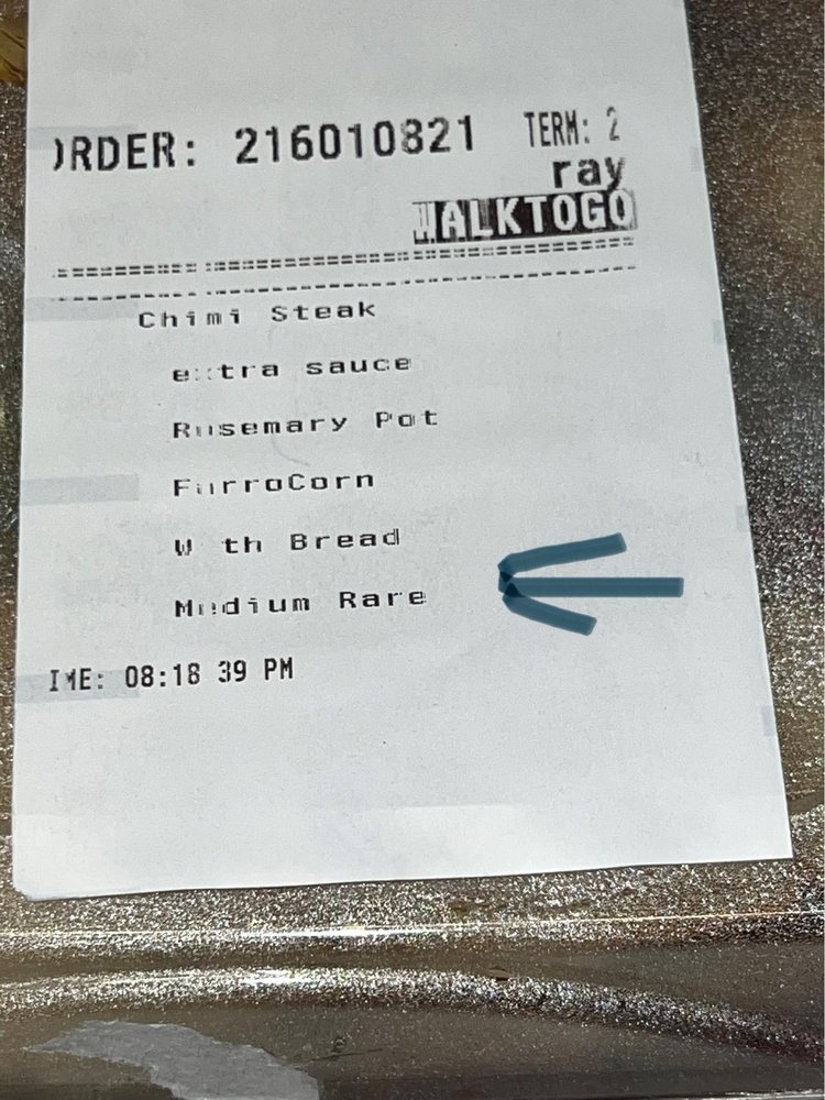 our signature grass-fed and grass-finished steak grilled medium rare, drizzled with our fresh chimichurri sauce, choice of two family sides and grilled artisan bread
